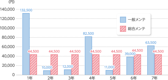JA-SS総合メンテナンス導入による点検費用対比表(7年間)
